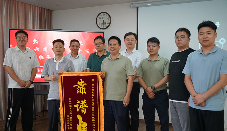 安徽綠能技術研究院有限公司(簡稱:綠能院)服務的六國化工股份有限公司(簡稱:六國化工,股票代碼:600470)副總工程師蔣良虎、技術中心綜合部部長陳明、主管熊秀峰一行于2025年7月17日頂著酷暑赴綠能院座談交流并送錦旗。